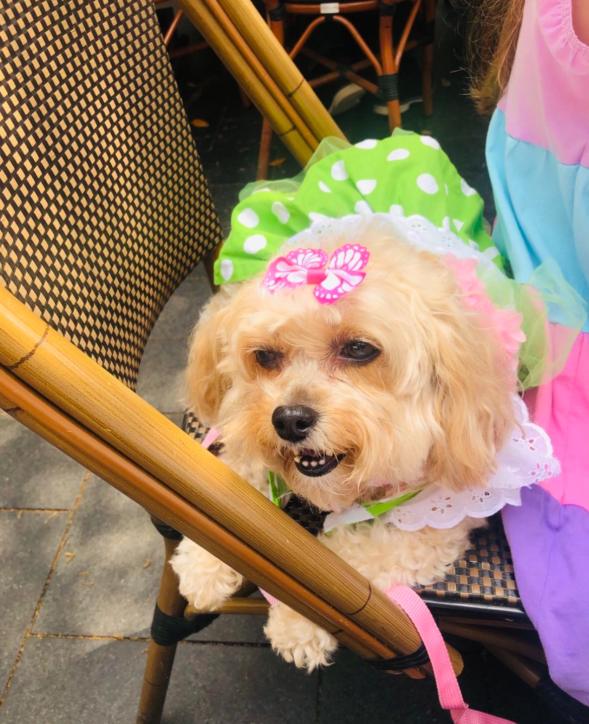 Personality & Style: Bibi is a natural in front of the camera, thanks to her smart, well-mannered nature and love for dressing up in the custom outfits my mom designs. Each piece is a little nod to our Pupparatzi brand origins from over 15 years ago. We’re relaunching Pupparatzi with Bibi as our muse and star, starting with small accessories and big personality! She adores visiting her favorite spots in the River Oaks District—especially dining at Toulouse and Bari—and loves meeting new people, children, and other pets. She’s the ultimate social butterfly with a paw-sitive attitude!